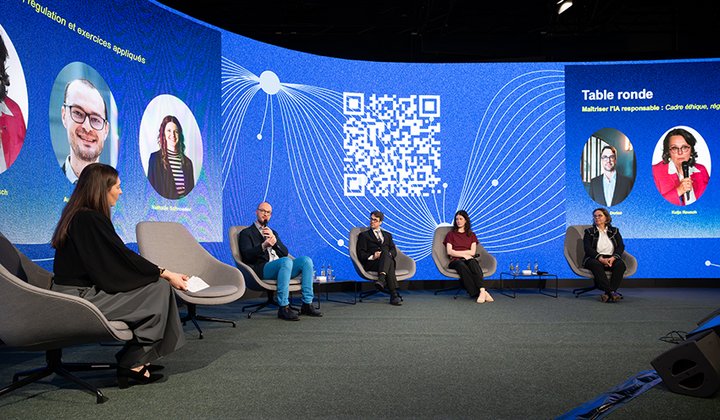 Une table ronde sur la maîtrise de l’IA responsable a ensuite permis d’aborder les aspects éthiques, réglementaires et pratiques de l’intelligence artificielle. Les intervenants Maxime Dérian, expert en AI et digitalisation, Katja Rausch, fondatrice de la House of Ethics et professeure à la Sorbonne, Auban Derreumaux, formateur en numérique durable, et Nathalie Schroeder de IMS Luxembourg, ont partagé des exemples concrets de mise en œuvre de l’IA responsable dans les entreprises, mêlant éthique, sécurité et performance.